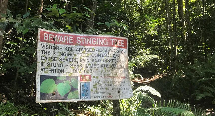 “自杀树”绝对不是浪得虚名的,它被认为是能够对人类造成最强痛觉的树,而且痛觉相当持久,退伍军人西里尔蹭到后只疼三周算是幸运的了,有人因为被它刺到痛觉足足持续了两年。