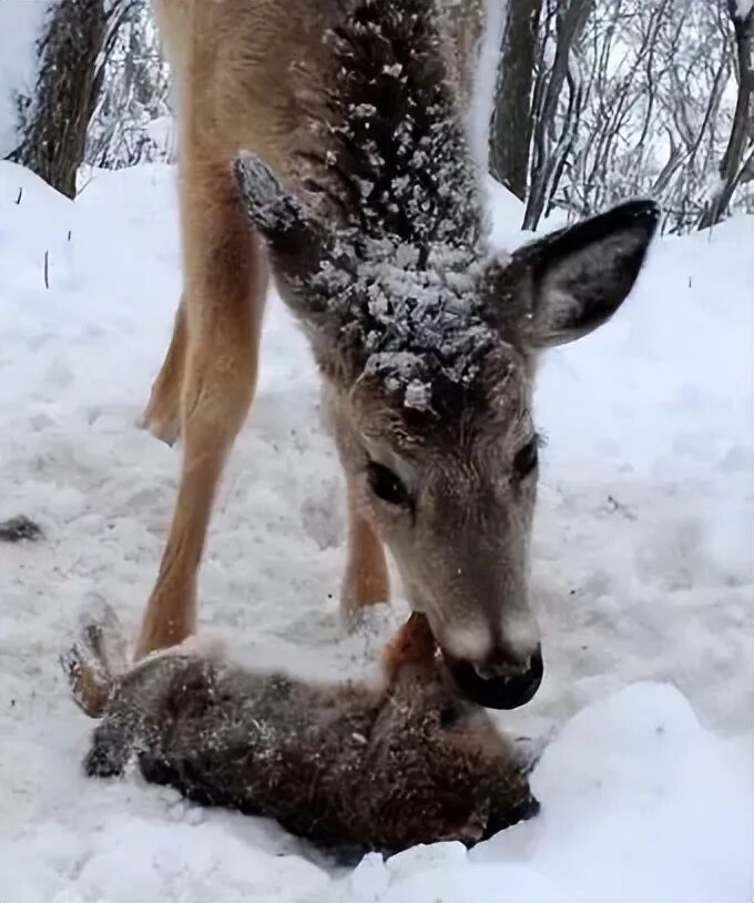 除此之外,有摄像机拍摄到鹿吃人类食物牛排,吃死去兔子肉和内脏的视频。由此可见,鹿吃肉并不挑,活物、死肉来者不拒。