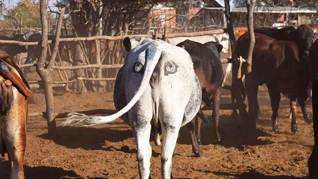 科学家将这些牛分成三种:683头牛屁股上画了一个人造的眼点图案,543头牛画了简单的十字标记,其余的不做任何标记。