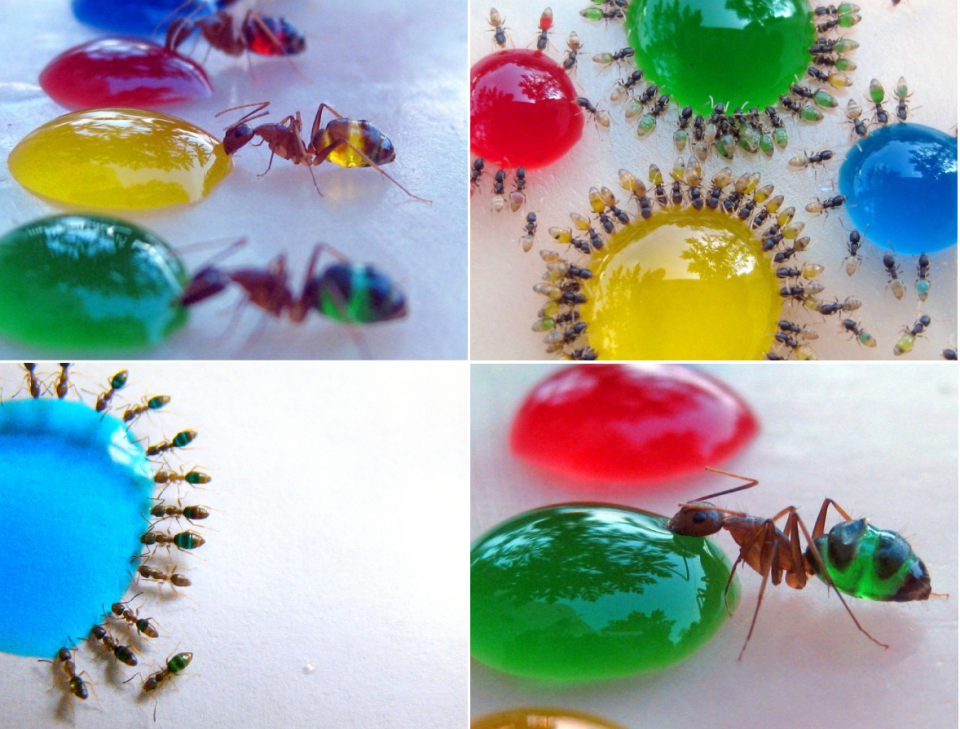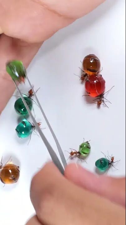 有的蚂蚁爱好者对蜜罐蚁情有独钟,他们会提供不同颜色的食物,然后欣赏蜜罐蚁那晶莹剔透、五颜六色的腹部。