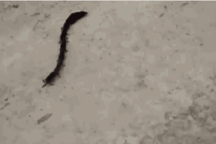 长长一条,好像有很多腿,一节一节的,仔细看头部略大,身体略小,还有一条小尾巴。