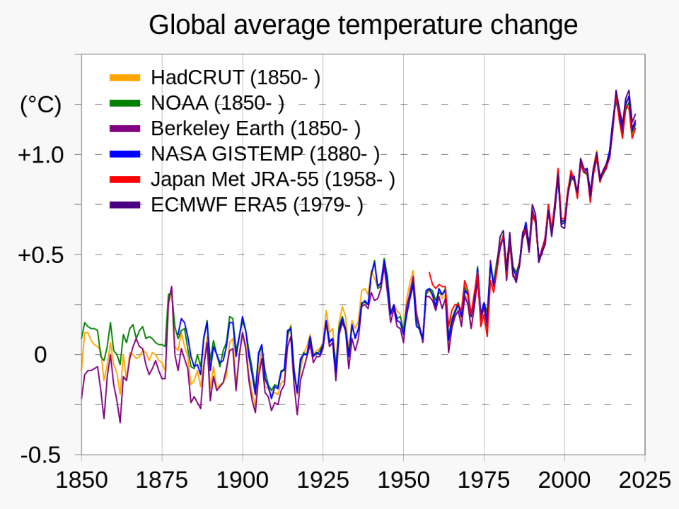 来自不同国家的几个机构对全球平均气温变化的统计©RCraig09