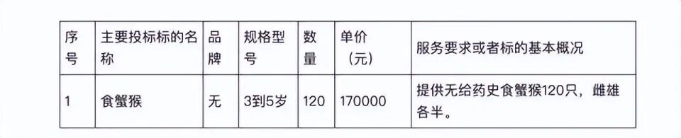 根据2023年4月公布的采购信息,中国食品药品检定研究院采购的食蟹猴总共是120只,而采购价则是2040万元,一只实验猴价格已经到了17万。