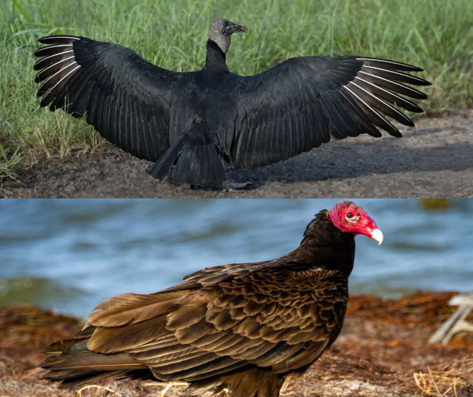 两者体型差不多,但红头美洲鹫攻击性比黑美洲鹫弱。