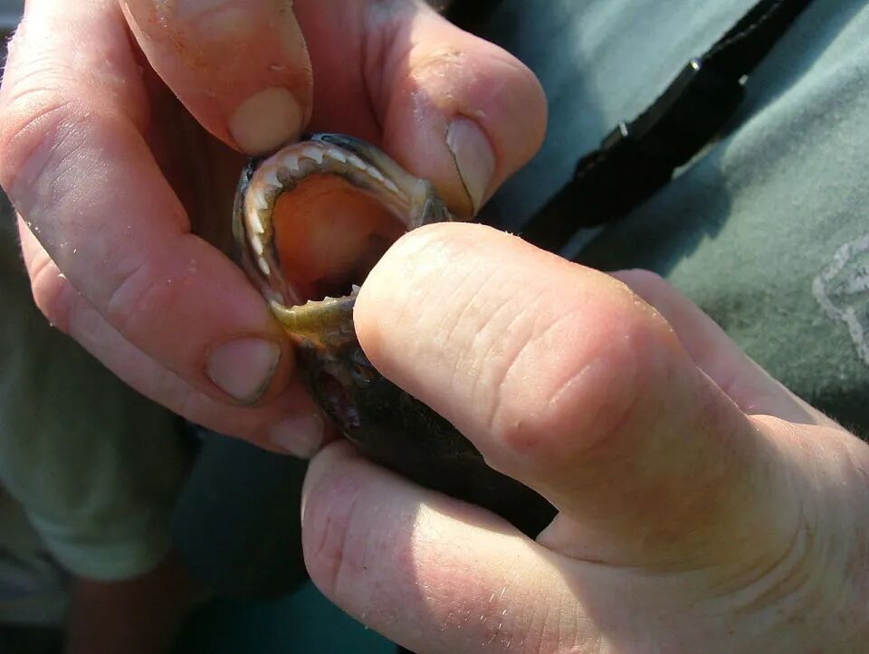食人鱼最厉害的是它的牙齿,很尖锐,咬合力也很惊人。如果被咬一口,绝对会流血,严重的就会少一块肉。