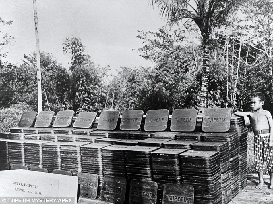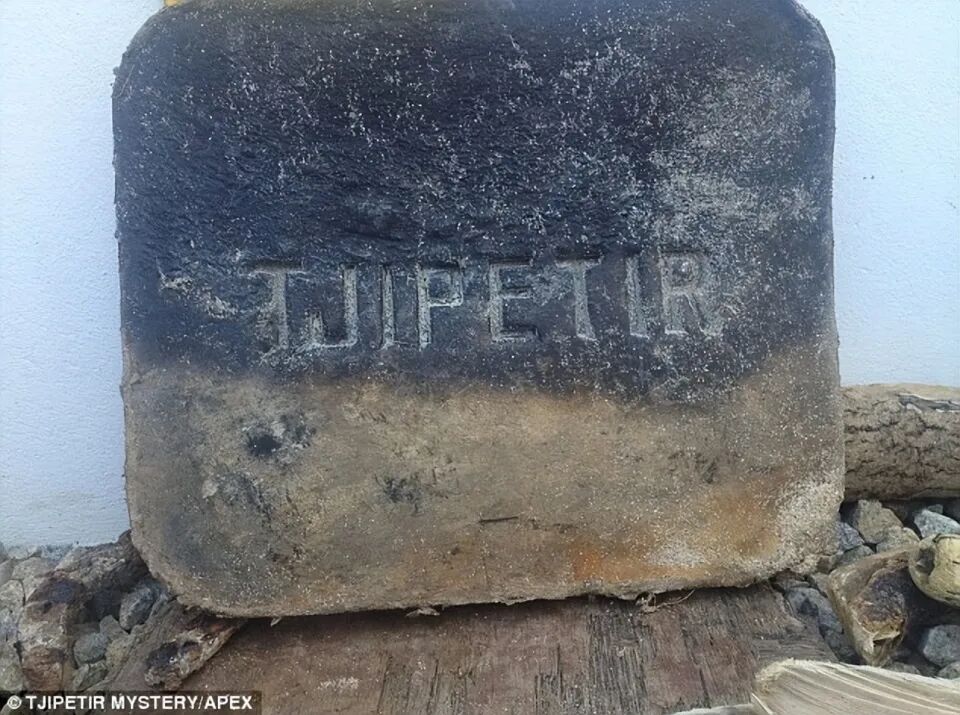 数百个一模一样的方块,长50cm,宽30cm,像个砧板,颜色呈灰黑色,上面还刻着“Tjipetir”铭文。