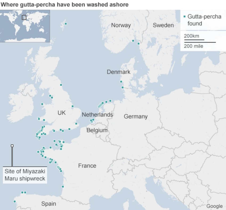 他们坚称这些古塔胶来自日本宫崎丸号沉船,这艘里面有很高价值的货物,一家公司在打捞物品时,意外将其释放。