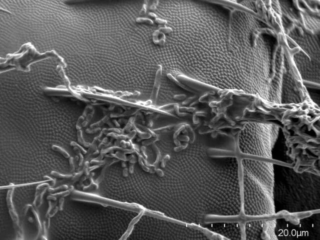 当放线菌生活的土壤,营养物质耗尽时,为了生存,细菌会释放孢子,寄期望于它们能逃离这块土地,寻找新的生活环境。