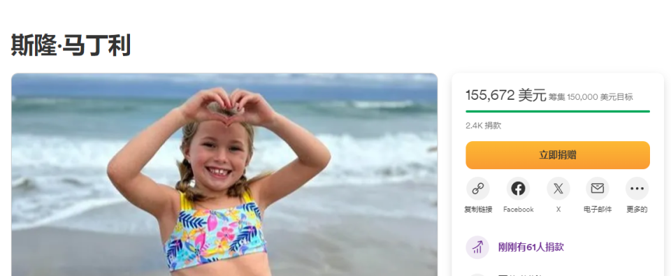 7岁的斯隆去世后,网友们也是非常悲痛,纷纷为其捐款,目前已经募集了155672美元的葬礼费用。