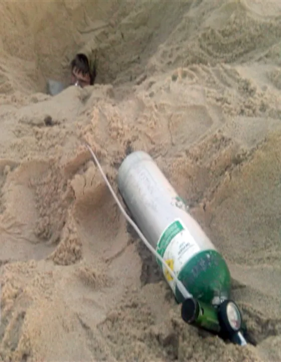 但沙子细密、重,而且会流动,在这种情况下,被沙子活埋和溺水是差不多的,很容易缺氧窒息死亡。有时候,即使头露在外面,胸腔以下被埋,也是有可能因为胸腔被挤压,导致机械性窒息死亡。