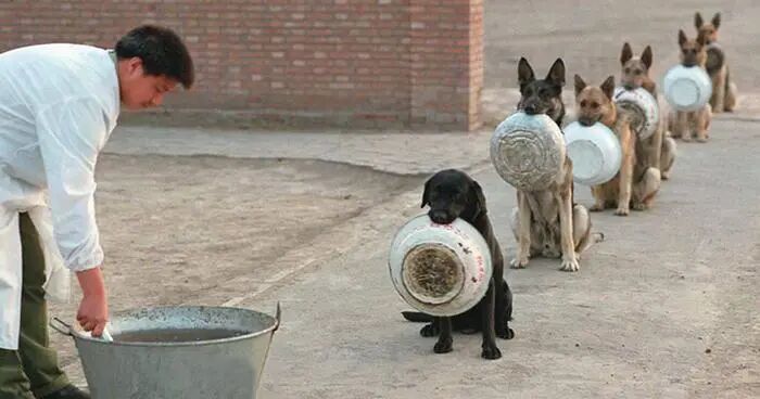 为了防止警犬吃多了犯困,或者吃多了要上厕所,一般来说,警犬除了早上的小点心外,一天只吃一顿。