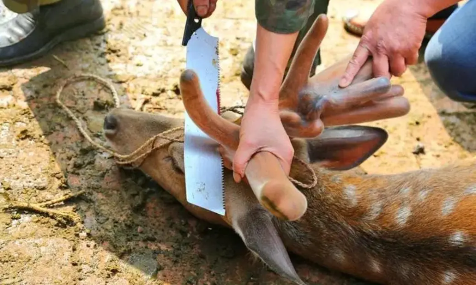 自动脱落的鹿角是没有药用价值的,因此一些养殖场会在鹿角还没有长成之前,就用刀割掉。