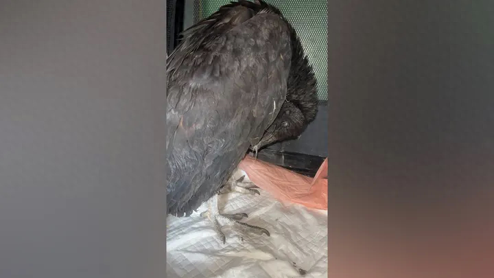 工作人员是在一个肉类市场的垃圾箱附近发现的,当时听到了“砰”的一声,循声望去,发现地上躺着一只黑美洲鹫,一动不动,工作人员怀疑这只大鸟被汽车撞了。