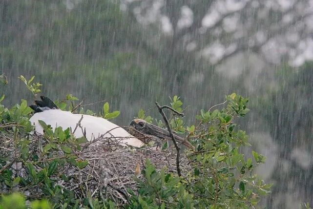大多时候,暴风雨来临前,鸟类是会躲避起来的,以免自己被雨水打湿,但是如果真的是长时间下雨的话,对于鸟类来说是致命的。