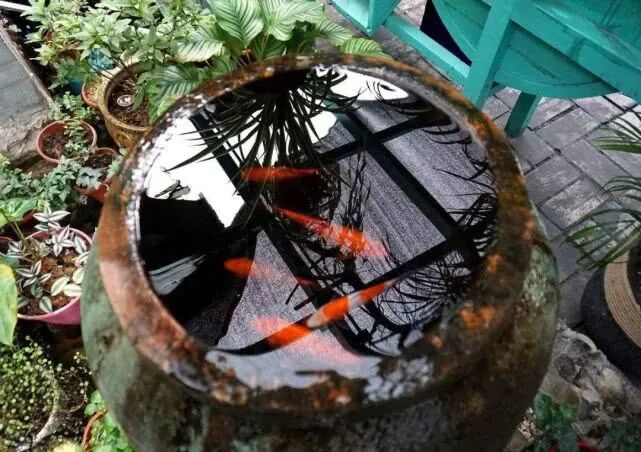 水缸是我们乡下蓄水饮用的工具,所以非常的干净,倒霉的鱼在这样的环境里,自然不可能被投食了。