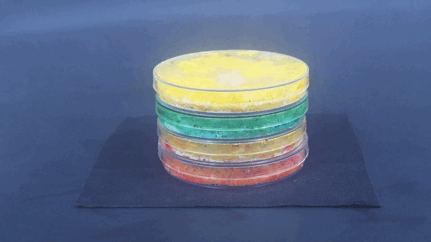 法国和比利时的科学家做了这样一个实验,他们在含有琼脂块的培养皿中培养了多头绒泡菌,然后将培养皿放在装有燕麦粉的培养皿旁边。
