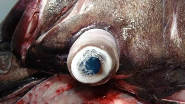 但是鱼类的气压创伤比我们要严重得多,典型表现就是眼睛肿胀,肚子膨胀,有时候甚至肠从尾部凸出,胃从嘴里凸出等等。