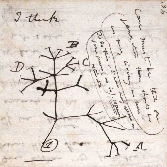 图注:达尔文笔记本中的“生命之树”