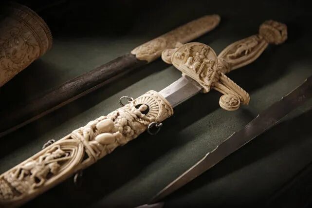 象牙雕刻是我们国家古老的民间技艺,象牙筷子、杯子、刀剑、剑鞘等等,雕刻技术已经炉火纯青。