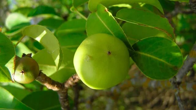 毒番石榴属于大戟科物种,可以长到15米高,和苹果树长得有点像,特别是它的果实非常像小苹果,果实成熟时呈绿色或黄绿色,与树的其它部位一样也是有毒的,所以它有一个称号——“死亡苹果”。
