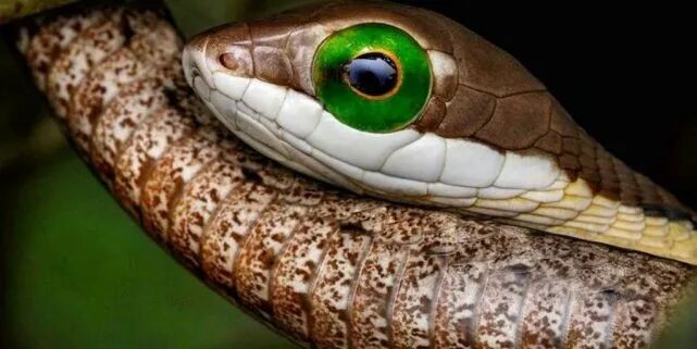 不过有一些蛇除外,那就是树栖的蛇,这些蛇的眼睛非常发达,大多数还都有立体视觉。所以你会发现生活在树上的蛇眼睛都很大,甚至到了有点滑稽的地步。