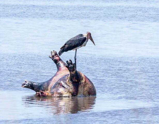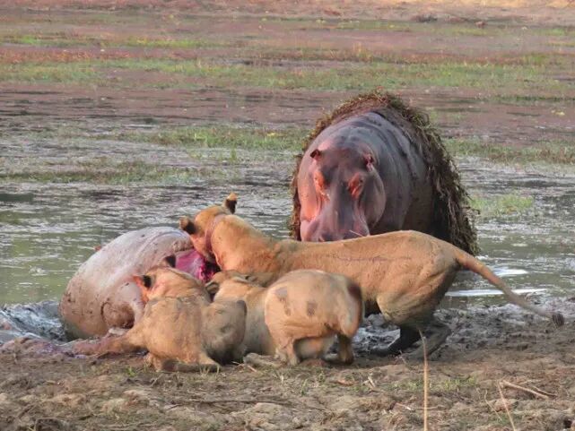 对河马来说,死亡的尸体是一种方便且免费的食物。