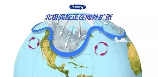 北极的迅速变暖削弱了急流并导致极地涡旋的破坏(极地涡旋是指北极附近的风带和低气压带),而极地涡旋通常会将冷空气锁在北极上空。