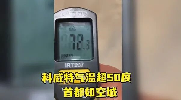 另一个亚洲国家科威特也经历了高温,有记者在正午拿着自己的仪器测出了72.3摄氏度的高温。