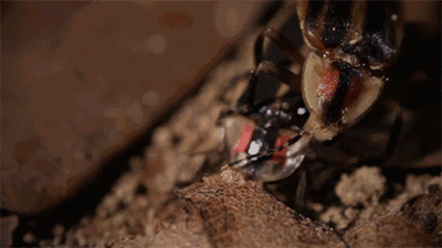 在吃雄性这条道路上做得最绝对的应该是蜘蛛,很多种类蜘蛛的雌性都会在交配结束后吃掉雄性,而雄性基本没有逃脱的可能,因为雌性蜘蛛有两个精细胞储存区,当雄性把这两个储存区都灌满的时候,它们已经无力逃脱了。