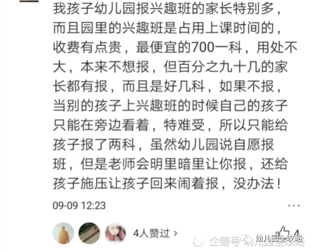 幼儿园放学那么早,是你家长要我开展延时服务的,幼儿园小朋友又不能像小学生乖乖坐在教室,那必须要开展活动,于是课后兴趣班就形成了。