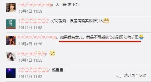 想到男幼师,不放心的家长若是只想到男阿姨也是都算好的了,就怕她们还想到“娘娘腔”、“念童癖”、“猥亵”等词语,无疑让男幼师感到害怕和无助。