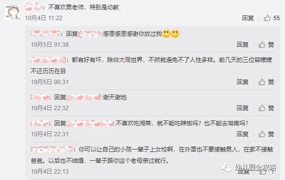 好在的是有更多的网友对此评论进行反驳和争辩,男幼师是招谁惹谁了?家长的阴暗面,以极个别的案例否认整个行业的从业者,这种思维也太幼稚了吧。