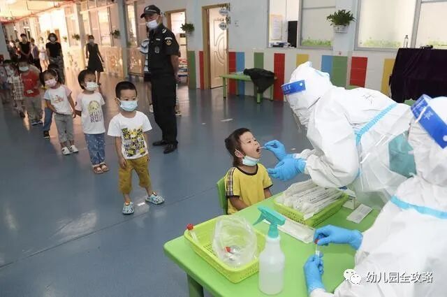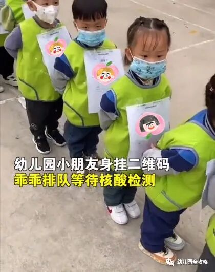 幼儿园宝宝挂二维码,乖乖排队等做核酸