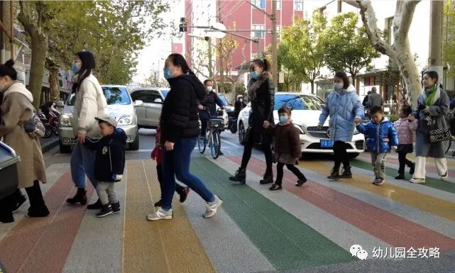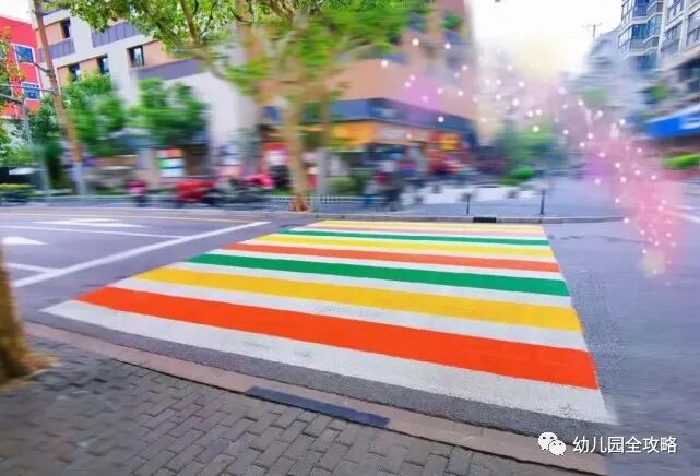 那彩色的斑马线你有见过吗?这就出现在上海一幼儿园的门口。