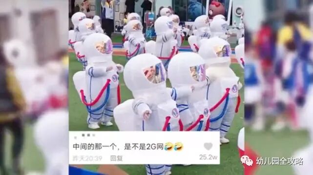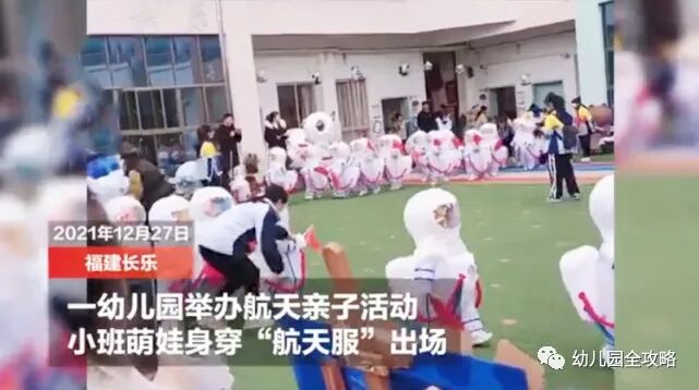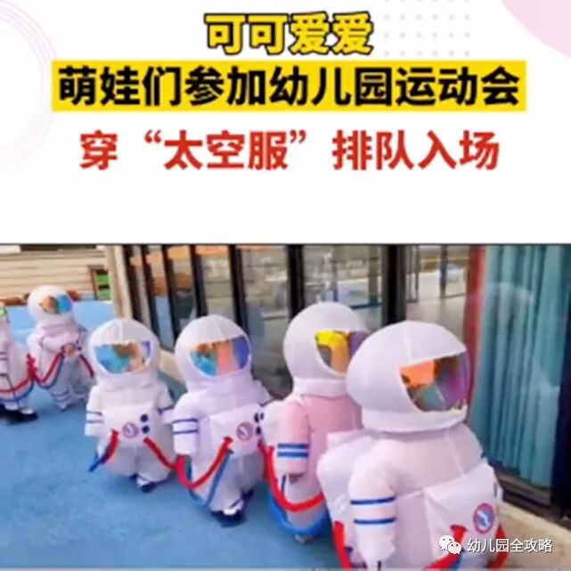 这个幼儿园就想到了太空航天的主题!那么小朋友们自然而然就是穿宇航服啦。