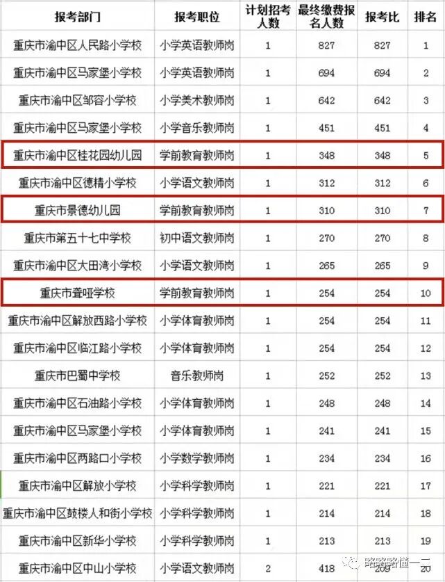 再看看三个学前教育岗,三个岗位报考比均杀进前十。