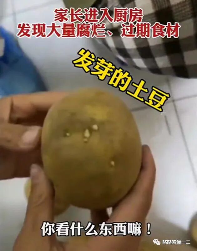 发现在幼儿园的厨房里,全是发霉的南瓜、腐烂的地瓜、发芽的土豆等等。不光是蔬菜不能直视,孩子们吃的水果点心苹果什么的也是发霉的。