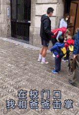最后要跟爸爸击掌,才被幼儿园的老师生生地拉了进去。