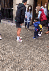 武磊送儿子入园,然后儿子迟迟不愿和爸爸分开。