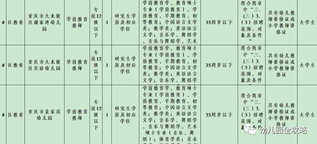 但是我们也可以从招聘要求上可以看出,公办园对于研究生专业的要求是比较广的。