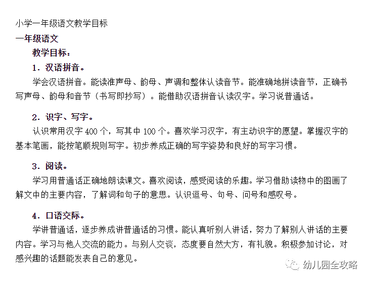 简单地看看小学一年级语文上册的教学目标: