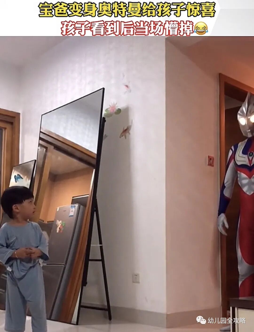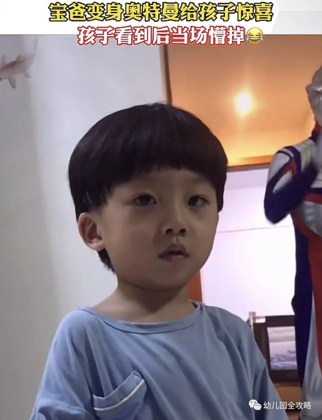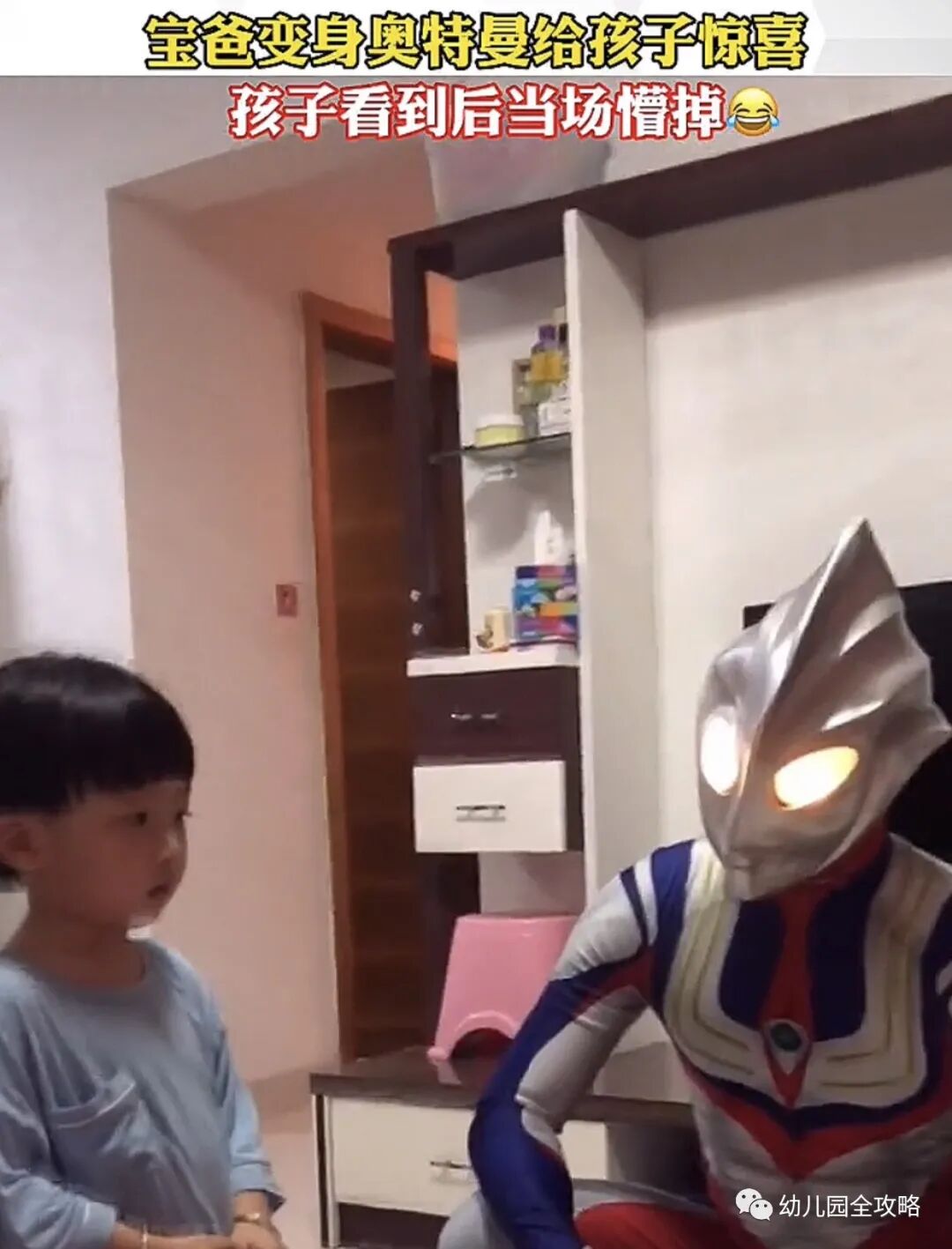 更加重要的是爸爸为了满足小朋友想看奥特曼的愿望不惜这样打扮自己是真的用心了。