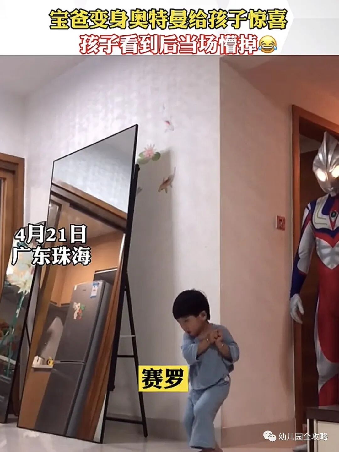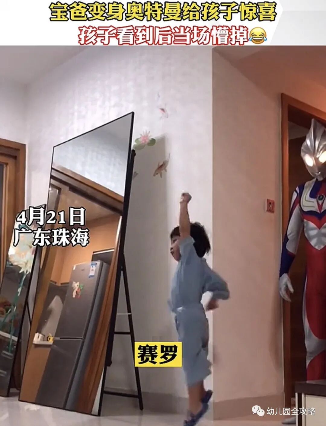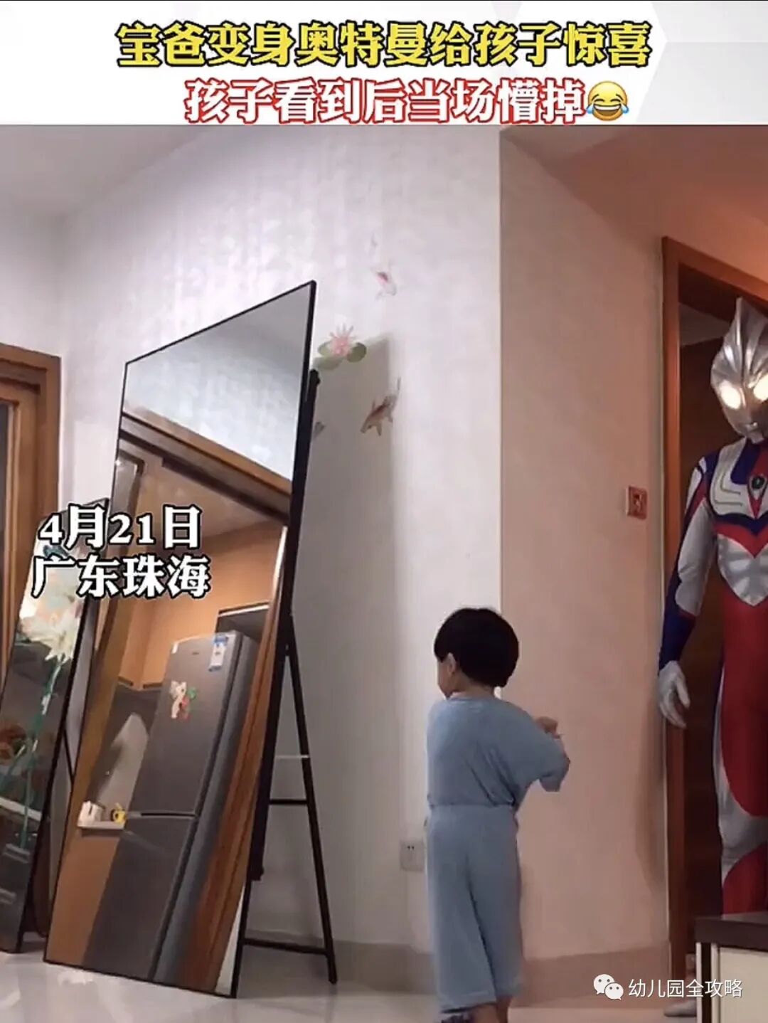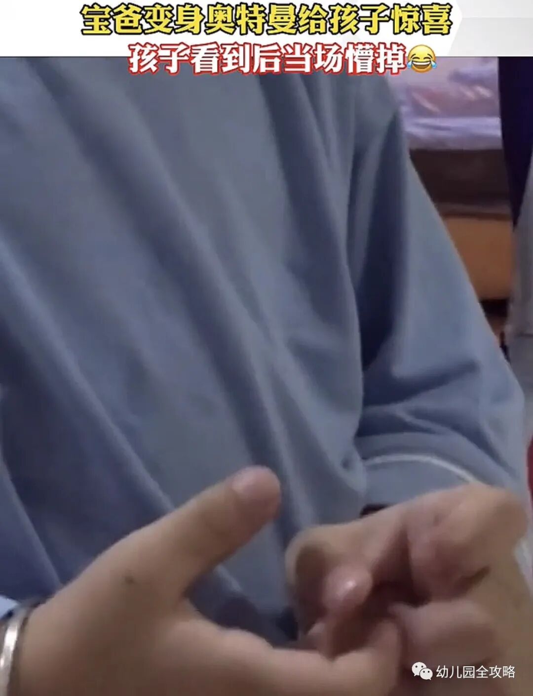 更加重要的是爸爸为了满足小朋友想看奥特曼的愿望不惜这样打扮自己是真的用心了。
