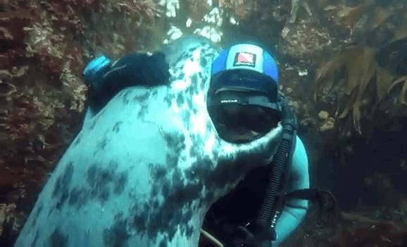 一位潜水客在诺桑伯兰附近海中下潜时,偶遇两周前曾经一起玩过的海豹,双方竟然都认出彼此,海豹还主动求抱抱,抱住就不松手...一定是特别的缘分