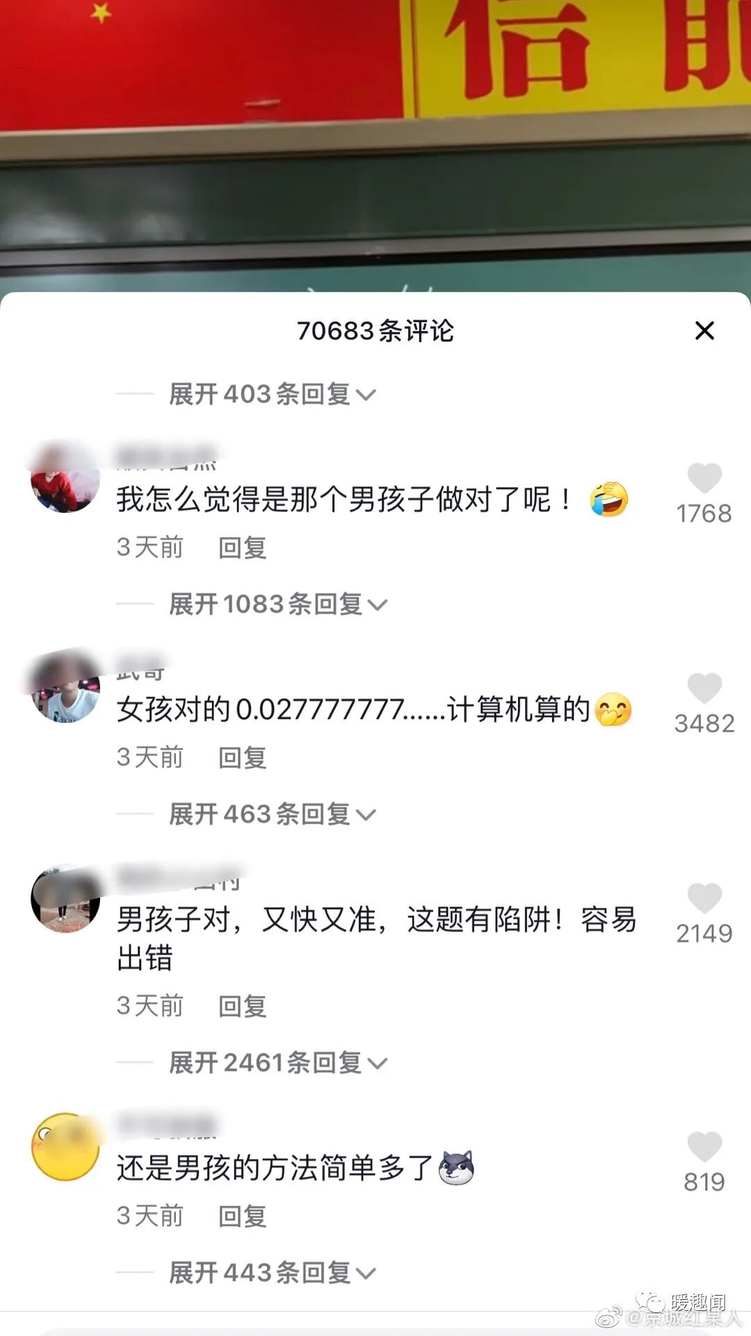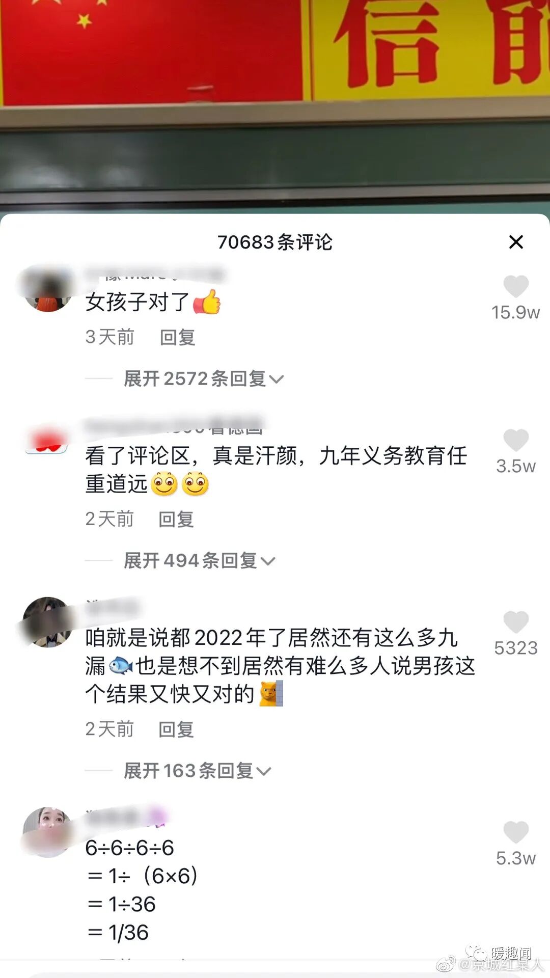 抖人居然能因为这道算术题吵7万楼
