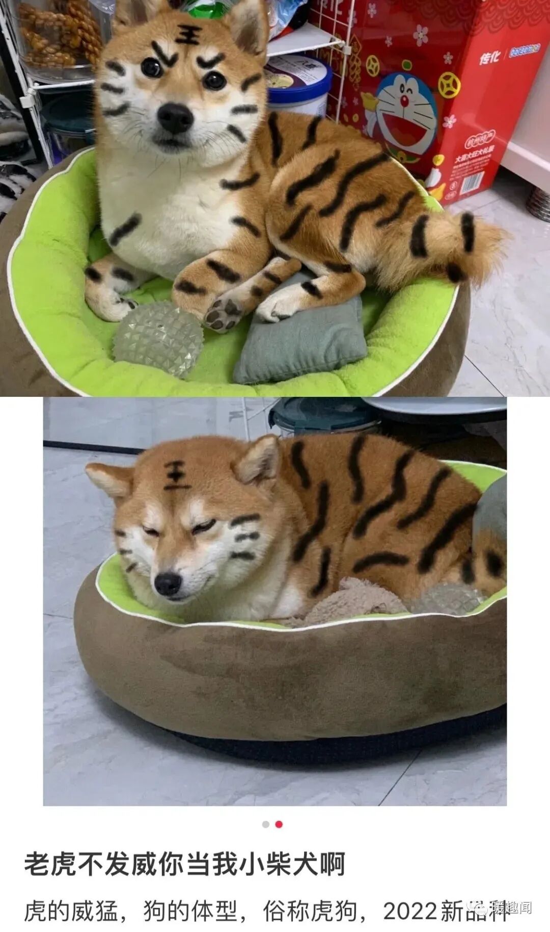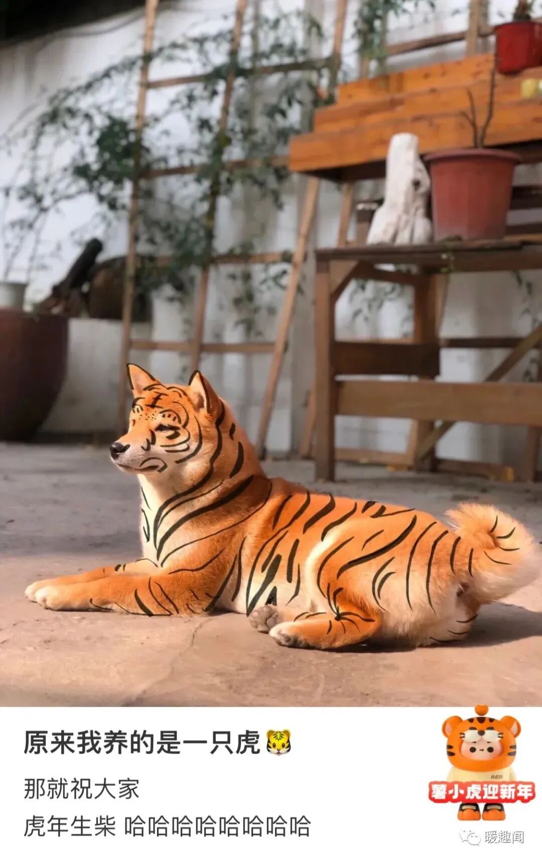画上虎纹的柴犬