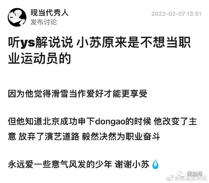 #原来苏翊鸣选择做职业运动员的原因是因为北京申奥成功了才改变主意放弃演艺道路转而选择做职业运动员的#