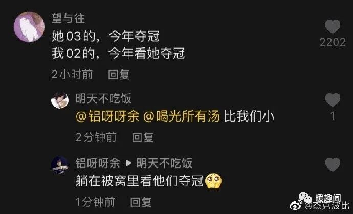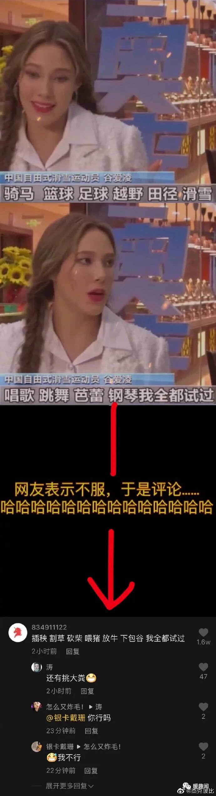 蛋壳槽:谷爱凌:我每天要睡够十个小时,网友:嗯嗯我以后也要学她多睡觉;谷爱凌:我每天不叠被子,网友:嗯嗯我以后也要学她不叠被子;谷爱凌:我考上了斯坦福还拿到了冠军,网友:嗯嗯她好棒。