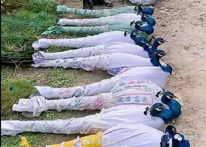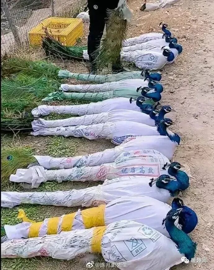 远看还以为是在捆树苗,近看原来是在准备运输孔雀!