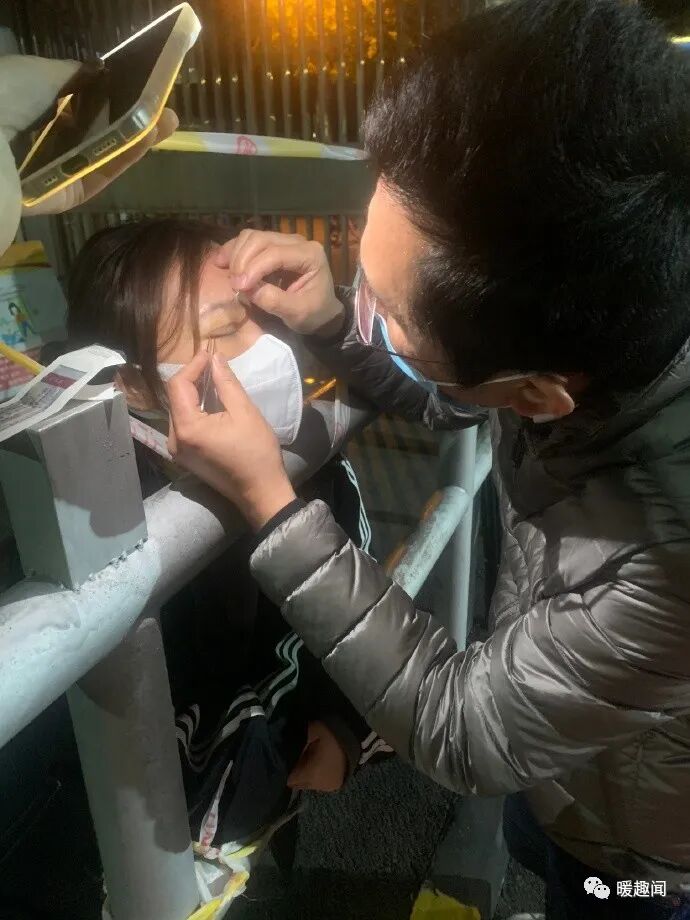 朋友的朋友发的,有认识的人做了双眼皮,可这两天要拆线但是小区封了不让出去,医生说我把镊子和刀片寄给你你自己拆。但是她害怕拆坏,于是夜里等着医生来小区,把头从小区栏杆里伸出来让医生在外面拆线……